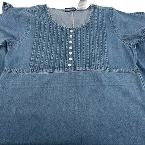 Erika & Co Demin Vintage Jean Dress Short Sleeve Flower Buttons Pleats Pullover