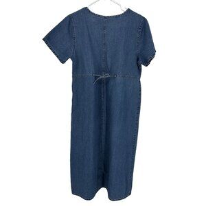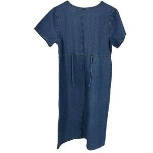 Erika & Co Demin Vintage Jean Dress Short Sleeve Flower Buttons Pleats Pullover Rear Bow Medium
