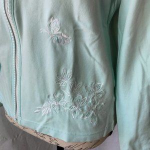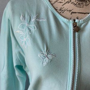 Erika Cotton Embroidered Cardigan - Medium – Turquoise, Zippered, NWOT