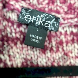 Erika Ladies Sleeveless Open Front Tweed Cardigan is a stylish and comfortable sweater made of a cotton blend tweed fabric. It is a medium knit cardigan with a garnet color and an open front design. The sweater is perfect for casual occasions and can be worn during the winter, fall, or spring seasons.