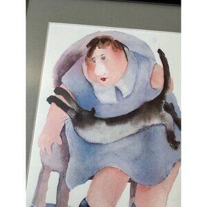 The Weston Gallery Framed Watercolor Art Print Of Lady With Black Cat