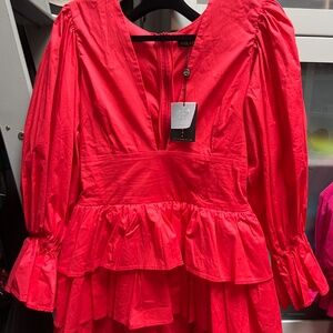 Beautiful coral red hue. This dress is the perfect addition to your summer days and nights, sadly it is too short for me who is 5'10. See length measurements. I am a size 8 and it fits true to size (but not on the large side). Now releasing our contemporary and timeless design, this Philippa top reinvents the everyday classic cotton poplin top and creates this new take by adding ballooned sleeves and a tailored waist. Simplistic with a refreshing spin, this piece is the perfect addition to any well-curated wardrobe.