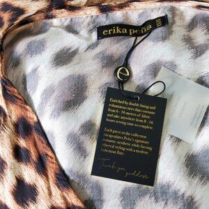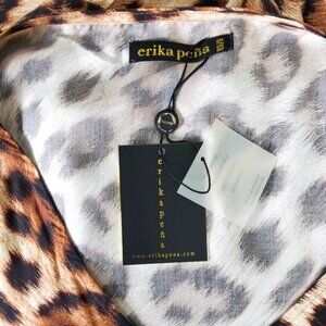 -Features: Erika Pena Maxi Dress, cheetah print, long sewn in sash that could be tied in a variety of ways, snap to secure the neckline, flowy full skirt, has pockets, elastic waist, boho, animal print, balloon sleeves with elastic wrist