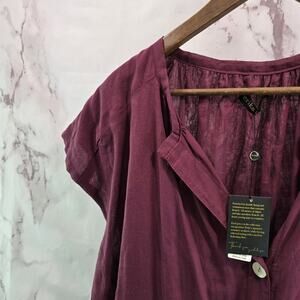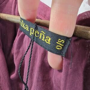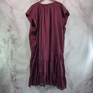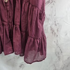 Erika Pena Dress Womens Maroon Burgundy Peasant Drop Waist Tiered Button