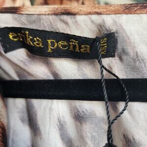 Erika Pena Farrah Sahara Animal Print Wrap Tie Waist Maxi Dress Size XS/S Short Sleeve Animal Print Wrap Tie Waist Maxi Length Pockets V-Neck Delicately gathered profile, accentuated neckline, exaggerated sleeves, wide ribbon belt. Silky 100% rayon-blend fabric, flattering cinched silhouette and a built-in tie belt that accentuates your physique. Layers of fabric cascading down to define a striking, dynamic silhouette. Wrap style maxi dress consumes 8 meters of hand dyed 100% rayon-blend fabric. New With Tags!