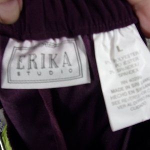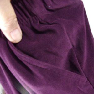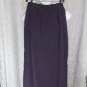 Erika Purple/Plum Maxi Boot Skirt Faux Suede/Moleskin Size L NWOT. Front Pockets. Elastic Waist approx 30"-36". Hips approx 46" Length approx 47". Polyester/Spandex Blend. Washable.
