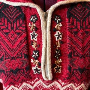 Erika Red and Black Zip Up Sweater with Nordic Patterns