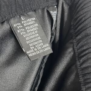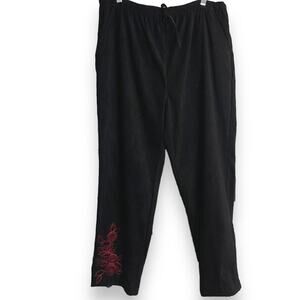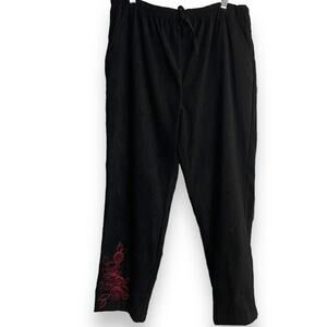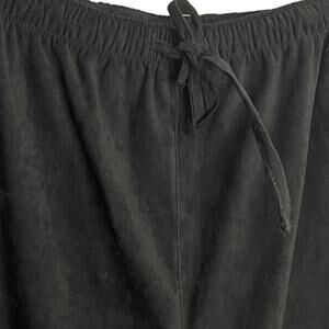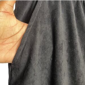 Women's black faux suede dress pants. These pants have pockets and a drawstring closure. Great condition. No rips or stains. Has a couple of pulls in the embroidered design. Please refer to all photos and measurements before ordering.