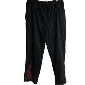 Erika Straight Leg Faux Suede Pants Women's L Black Floral Embroidery Casual VTG