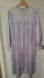 Full-length sleepwear nightgown in baby blue. Features long sleeves, picot lace around square neck and a lace and embroidery design across the chest. Gathered sleeves with picot lace detail at the cuffs.
