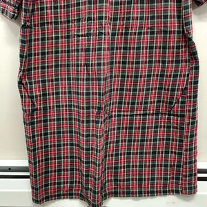 Erika Taylor Intimates Flannel Plaid Full Length Long Nightgown. Great preowned condition. Size/fabric content tag was removed, nightgown is size medium and 100% cotton. Black with red, green, yellow and white plaid. Long sleeves, gathered at shoulders, collar and buttons placket have ruffle detail. Please see photos for approximate measurements and details. Item may show difference in color based upon photography and perception. Photos are part of the description, as everyone’s level of condition may vary. From smoke free and pet free home. All packages are shipped the same or next business day. Item is pre-owned and may show signs of fading, pilling and/or loose strings from normal wash and wear. I do my best to note and photograph anything that would be a defect such as a hole, rip or stain.