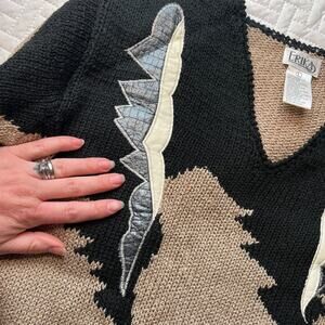 Erika VTG 80s Rockabilly Sweater NEW sz M Abstract Black Knit Preppy Winter Fall