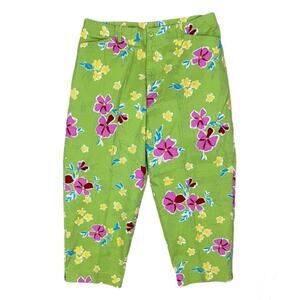 Erika Vintage Floral Print Cropped Pants Size 14 Green Pink