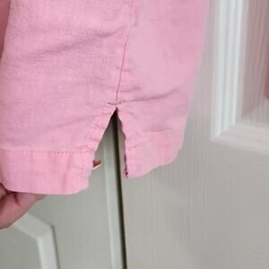 Erika Woman Pink Short Sleeve Button Front Top Size 1X Gold Embroidery Beaded