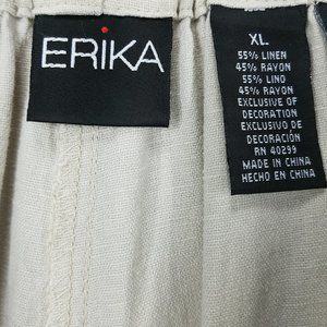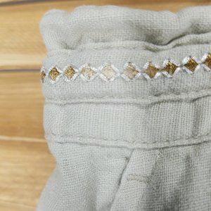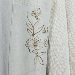 * 55% linen 45% rayon women's pants embellished flower embroider pockets, mtn.boho luv'd cream color soft beige movable breathable loose fit high waist size xl