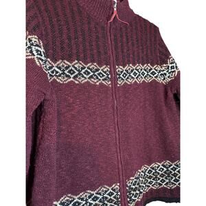 Erika Zip Up hoodless Acrylic Purple Maroon Thick Knit Sweater Size Small