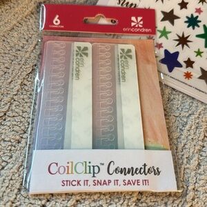 Erin Condren CoilClip Connectors (6) & 3 Sheets Stickers (stars, gift, sayings)
