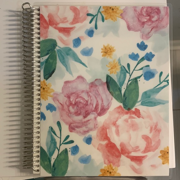 Erin Condren classic lined notebook. Missing three notes pages that were used but in pristine condition with unused sticker page.