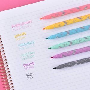 PASTEL COLORS: This Dual Tip Marker Pack includes a set of 6 individual pastel colors. With colors in; bubblegum, lemon, turquoise, sea foam, orchid and gray, you will have variety at your fingertips. Perfect for precision and versatile writing, sketching, decorating and coloring.