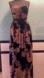 Strapless neckline, black base with a floral burnout velvet pattern and pink floral accents.
