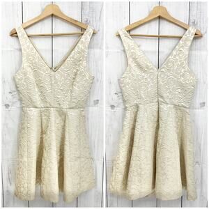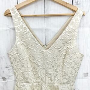 Erin Fetherston Sz 6 Cream Floral Jacquard Dress Mini Fit & Flare Sleeveless V Neck A Line