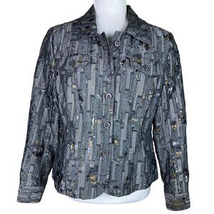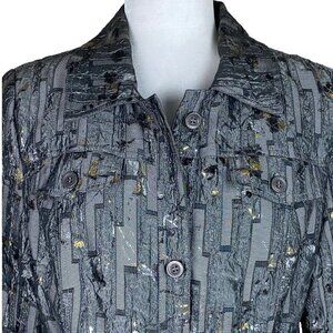 Erin London Blazer Jacket Boxy Lagenlook Metallic Gold / Silver Accents Size PM