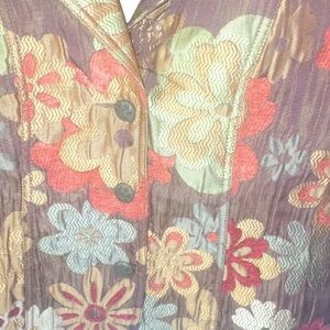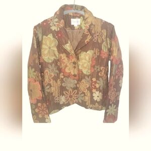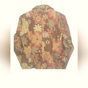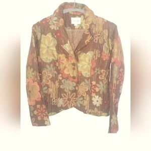 Erin London Brown Brocade Retro Floral Long Sleeves 60s Style Blazer Jacket Sz S