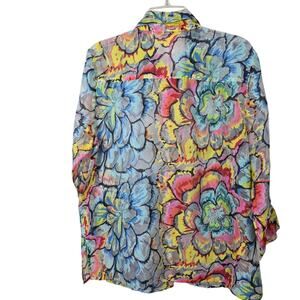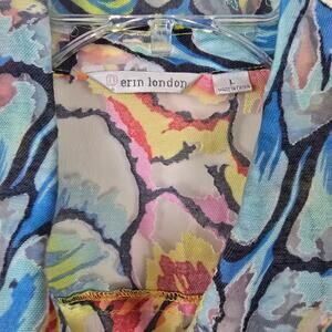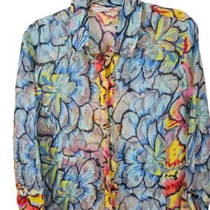 Erin London Burnt Out Floral Bohemian Art To Wear Blouse Abstract Artsy Fairy L
