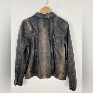 Erin London Faux Snakeskin Button Down Soft Jacket, Size XL, Black Metallic Reptile Print