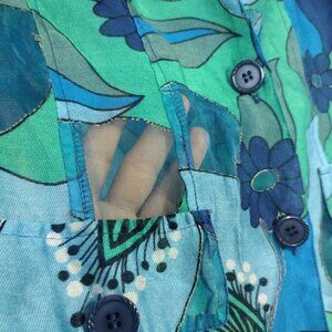 Erin London Floral Blazer Jacket Women's Lined Front Button Blue Green Size L