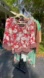 Gorgeous for fall more of a burnt orange or brick red than a true red very floaty generous fit super comfortable Chic floral blouse with a red and white pattern. Perfect for adding elegance to any outfit.