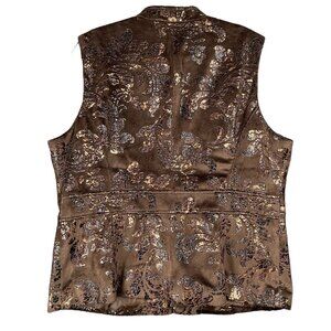 Erin London Vest L Brown Velvet Full Zip Metallic Warm Pockets Cozy Office Work