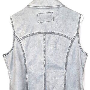 Erin London Woman's Vest Size Medium, Faux Leather feel, Pockets. Made to look like denim. Great vest overall. Stylish. Ships fast. Measurements and pictures are taken of each garment/item and are included in the listing. Item is free from stains, rips or observed issues unless otherwise noted in listing.