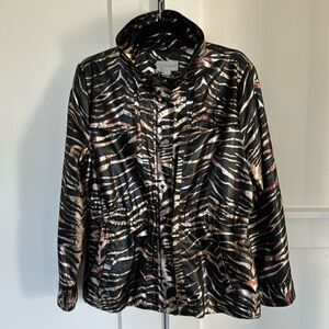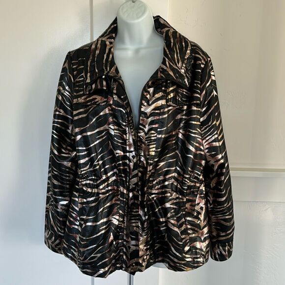 Erin London Women’s Cotton Blend Zebra Print Metallic Front Zip Up & Snap Size L