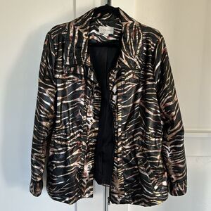 Erin London Women’s Cotton Blend Zebra Print Metallic Front Zip Up & Snap Closure Size L EUC