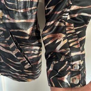 Erin London Women’s Cotton Blend Zebra Print Metallic Front Zip Up & Snap Size L