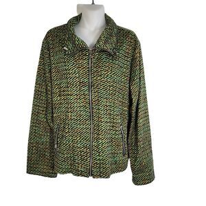 Erin London Womens Jacket Sz XL Green Full Zip Pockets Drawstring Collar Stretch