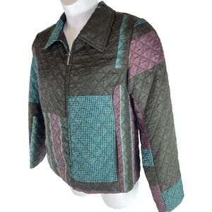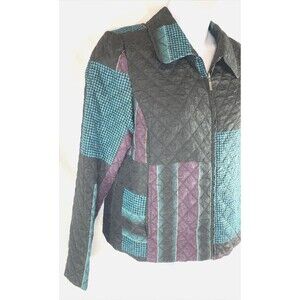 Erin London Women's M Quilted Color Block Jacket Zipper Puffer Purple Blue y2k