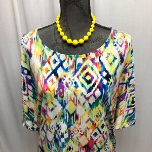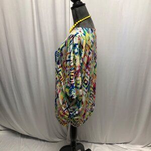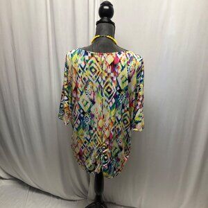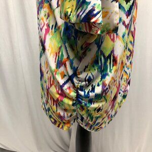 Erin London Womens Multicolor Abstract Print Top Sz Large Stretchy Short Sleeve