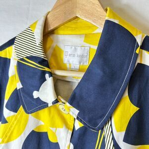 Erin London Yellow Navy Floral 3/4 Sleeve Collared Button Up Topper Jacket Sz L