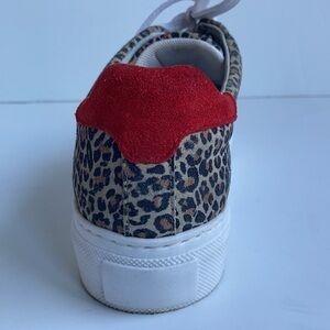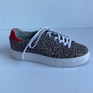 Good condition Erin Michael Portugal Topper leopard print lace sneakers. Red at heel.