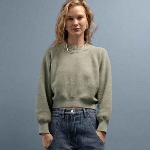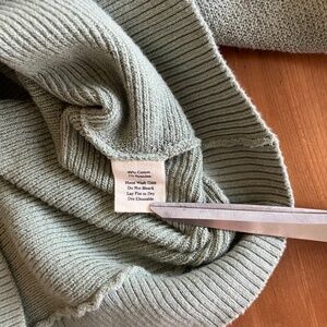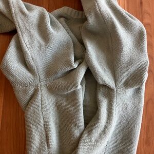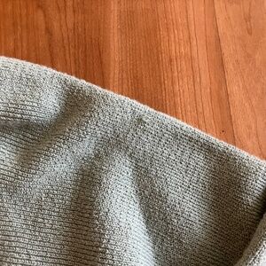First owner, worn a few times. Several small pulls. Light underarm pilling. Color (Seafoam) is accurate in stock photos.