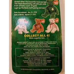 Erin The Bear -McDonald's Ty Beanie Baby With Rare Errors 1993/OAKBROOK