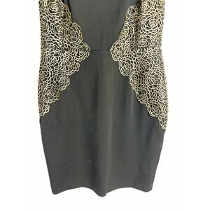Erin by Erin Fetherston Shelby Black Gold Appliqué Sheath Cocktail Dress Size 4