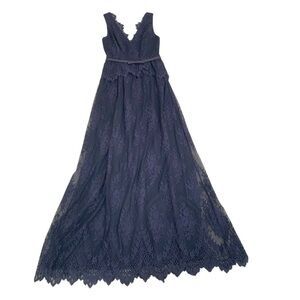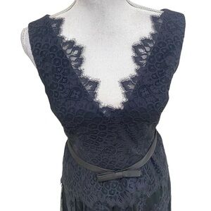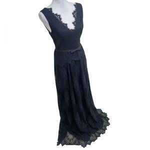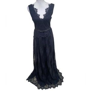 Erin by Erin Fetherston v neckline black lace fit and flare gown. Double lined. Back zipper. Peplum. Black tie at waist. Wore once. Like new.