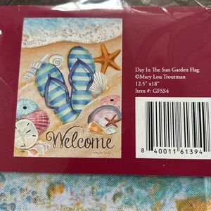 Erin’s Garden Day in the Sun Beach Flip Flops,Sand.Shells decorative garden flag