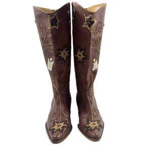 Erkan Demir Artemis Brown Leather Embroidered Western Cowgirl Boots Size 37/6
