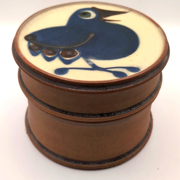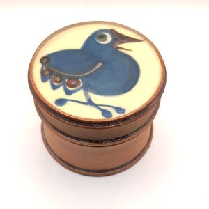 Erling & Karin Heerwagen Signed Studio Pottery Trinket Box w Lid Blue Bird Motif