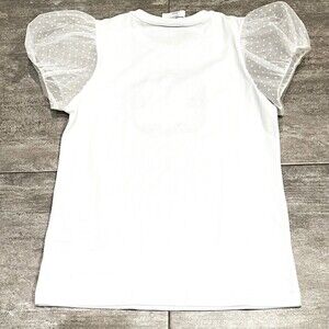Ermanno Scervino Junior White “E” Princess T Shirt With Tulle Sleeves Size XL