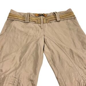 Ermanno Scervino Tan Cropped Pants with Gold Accents